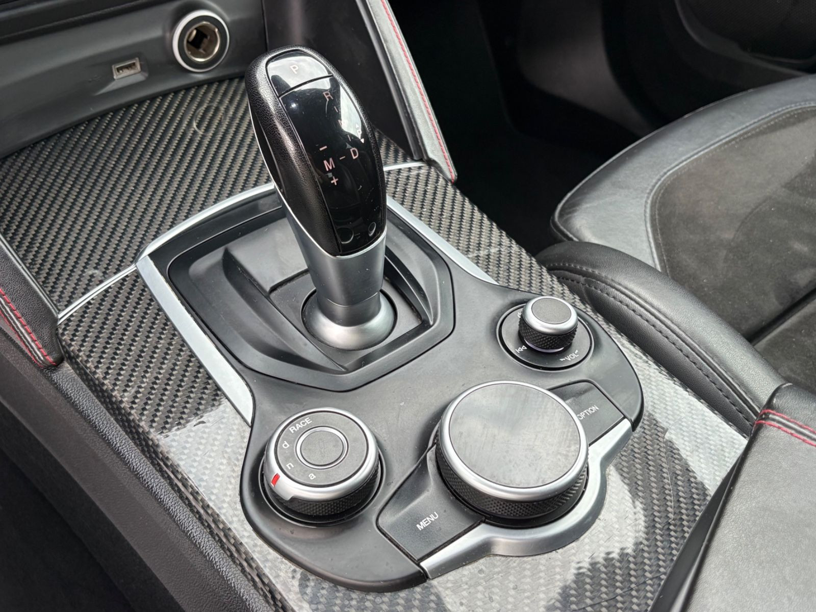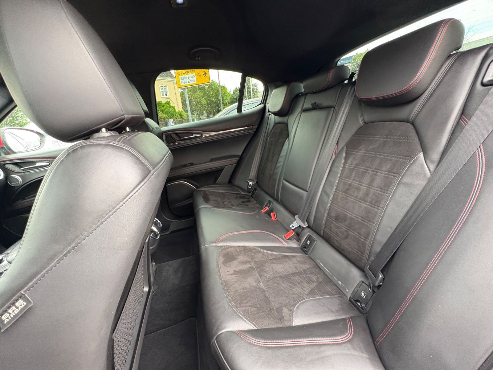 Bremssättel Rot lackiert, Gepäcknetz im Koffer-/Laderaum, Lenkrad (Sport / Alcantara, unten abgeflacht - Quadrifoglio), Raucher-Paket, Schienensystem im Kofferraum, Seitenscheiben hinten und Heckscheibe abgedunkelt, Sitze vorn elektr. verstellbar (8-fach), Sound-System Harman-Kardon, Sportsitze Leder / Alcantara (Armaturenbrett und Türverkleidung Nero / Nero), USB-Anschluss im Fond