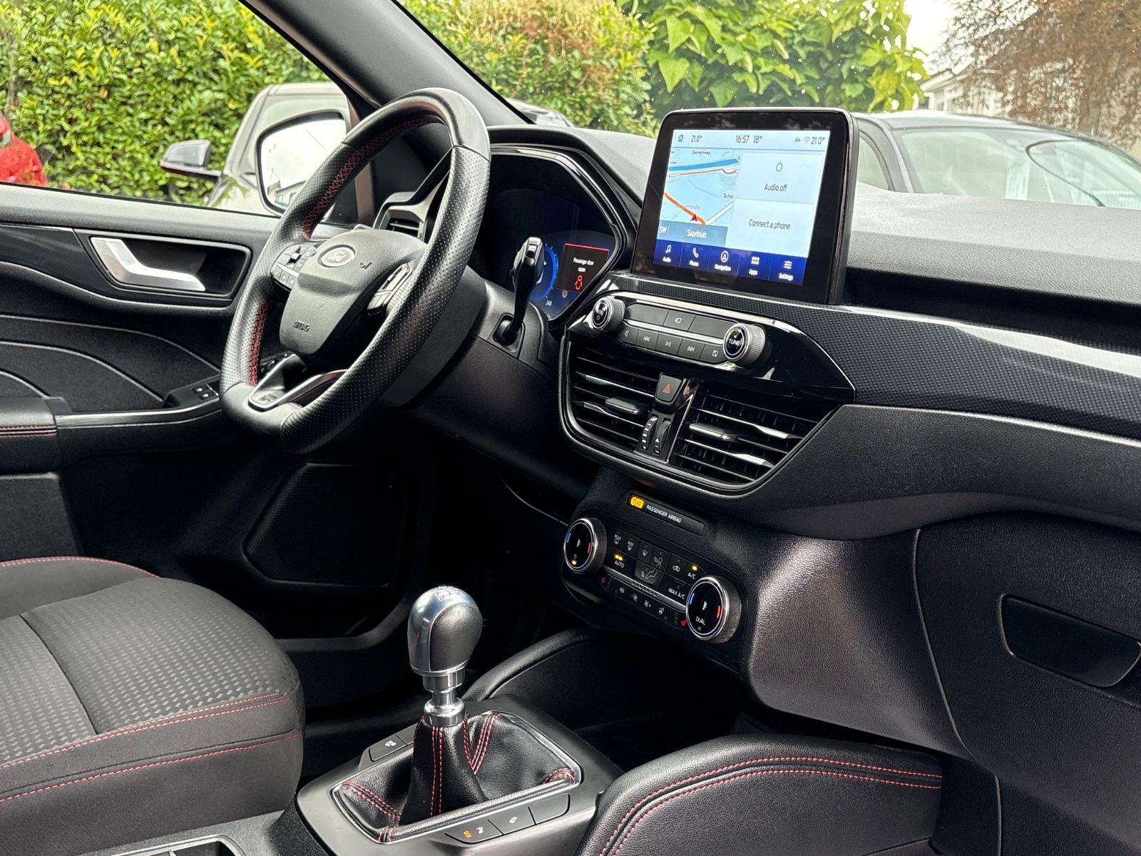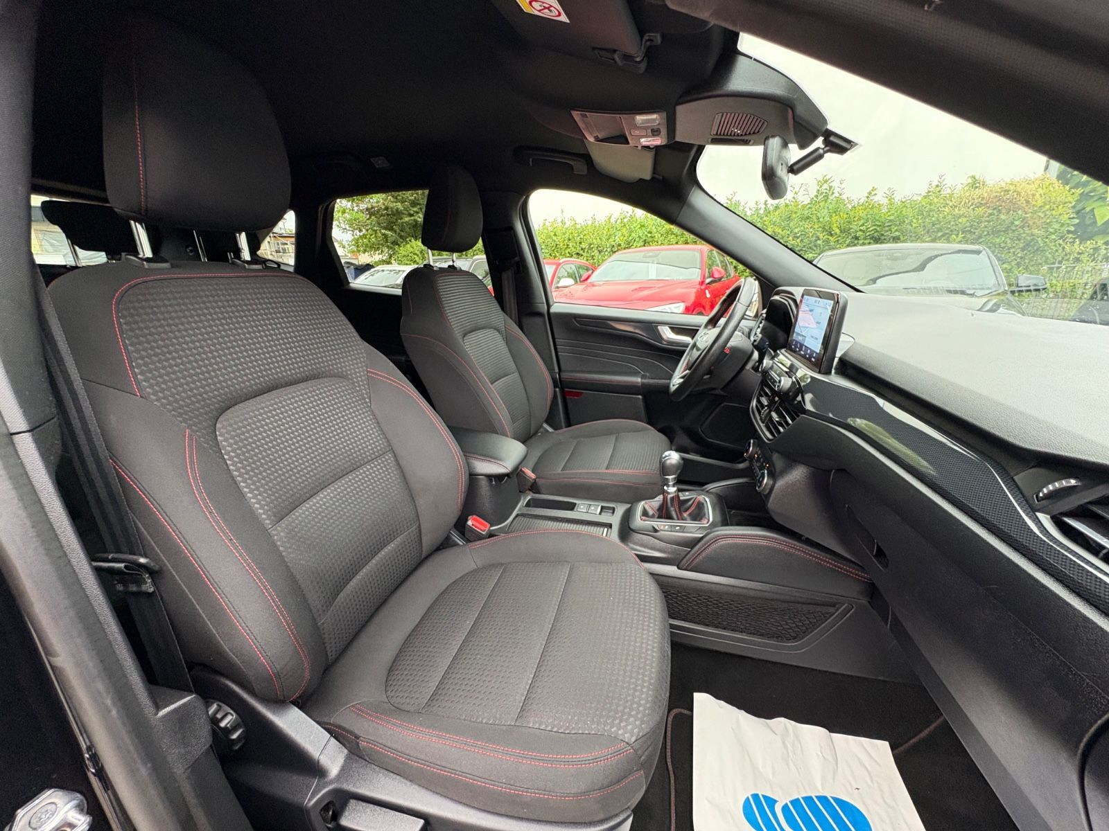 Ambiente-Beleuchtung vorn (LED), Antischlupfregelung (ASR), Audio-Navigationssystem Ford mit AppLink, Außenspiegel elektr. anklappbar, Außenspiegel elektr. verstell- und heizbar, Body-Styling-Paket, Bordcomputer, Dachhimmel Stoff, dunkel, Dachreling schwarz, Dachspoiler Wagenfarbe, Doppelendrohr Auspuffanlage, Eco-Anzeige für verbrauchsoptimiertes Fahren (EcoCoach), Fahrassistenz-System: Notbrems-Assistent, Fahrassistenz-System: Post-Collision-System, Fahrassistenz-System: Pre-Collision-System, Fahrassistenz-System: Spurhalteassistent, Fensterheber elektrisch vorn + hinten mit Komfortschließung, FordPass Connect inkl. eCall, Fußmatten ST-Design, Gepäckraumabdeckung / Rollo, Heckleuchten LED, Induktionsladeschale für mobile Endgeräte, Innenspiegel mit Abblendautomatik, Intelligent Protection System (IPS), Isofix-Aufnahmen für Kindersitz, Karosserie: 5-türig, Klimaautomatik 2-Zonen, Kombiinstrument Digitalanzeige 12,3 Zoll, Kopfstützen vorn 4-fach verstellbar, Lenkrad (Sport/Leder, ST), Lenksäule (Lenkrad) höhen-/längsverstellbar, LM-Felgen, Motor 1,5 Ltr. - 110 kW EcoBoost KAT (1496 ccm), My Key (2. Fahrzeugschlüssel programmierbar), Nebelscheinwerfer LED, Parkbremse elektrisch mit Auto-Hold-Funktion, Parkpilotsystem vorn und hinten, Radstand 2710 mm, Reifen-Reparaturkit, Reifendruck-Kontrollsystem, Rücksitzlehne geteilt, Rücksitzlehne klappbar, Schadstoffarm nach Abgasnorm Euro 6d, Schalt-/Wählhebelgriff Aluminium, Scheibenrahmen schwarz, Scheinwerfer mit Ausschaltverzögerung, Scheinwerfer Projektionslinsen-Design, Scheinwerfer-Assistent mit Tag-/Nachtsensor, Sitz vorn links verstellbar (8-fach), Sitz vorn rechts verstellbar (8-fach), Sitzheizung vorn, Sonnenblende links mit Spiegel (beleuchtet), Sonnenblende rechts mit Spiegel (beleuchtet), Sport-Fahrwerk, Sportsitze, Start/Stop-Anlage