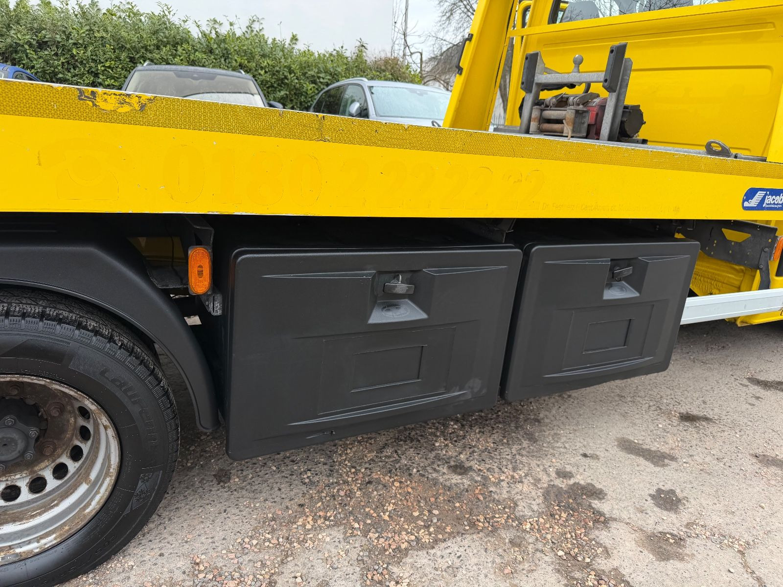Anfahrhilfe (Berganfahr-Assistent), Anhängersteckdose 13-polig, Audiosystem Audio 10 (Radio mit CD-Player), Außentemperaturanzeige, Batterie zusätzlich (verstärkt), Bi-Xenon-Scheinwerfer mit Abbiegelicht, Fahrtenschreiber digital, downloadfähig, Generator 180 A, Getriebesperre für Nebenantrieb, Hauptschlüssel zusätzlich, Lenkrad (Lenksäule mech. verstellbar), Nebenantrieb 2 C mit Vorgelegewelle, Parametrierbares Sondermodul, Querträger für Anhängerkupplung, Rückspiegel innen, Rückwand mit Fenster, Schmutzfänger vorn, Sitze im Fahrerhaus: Beifahrerdoppelsitz, Sitze im Fahrerhaus: Fahrersitz heizbar, Stabilisator hinten verstärkt, Stabilisator vorn verstärkt, Trennrelais bei Batterie zusätzlich, Vlies-Batterie 95 Ah, Vorderachse verstärkt