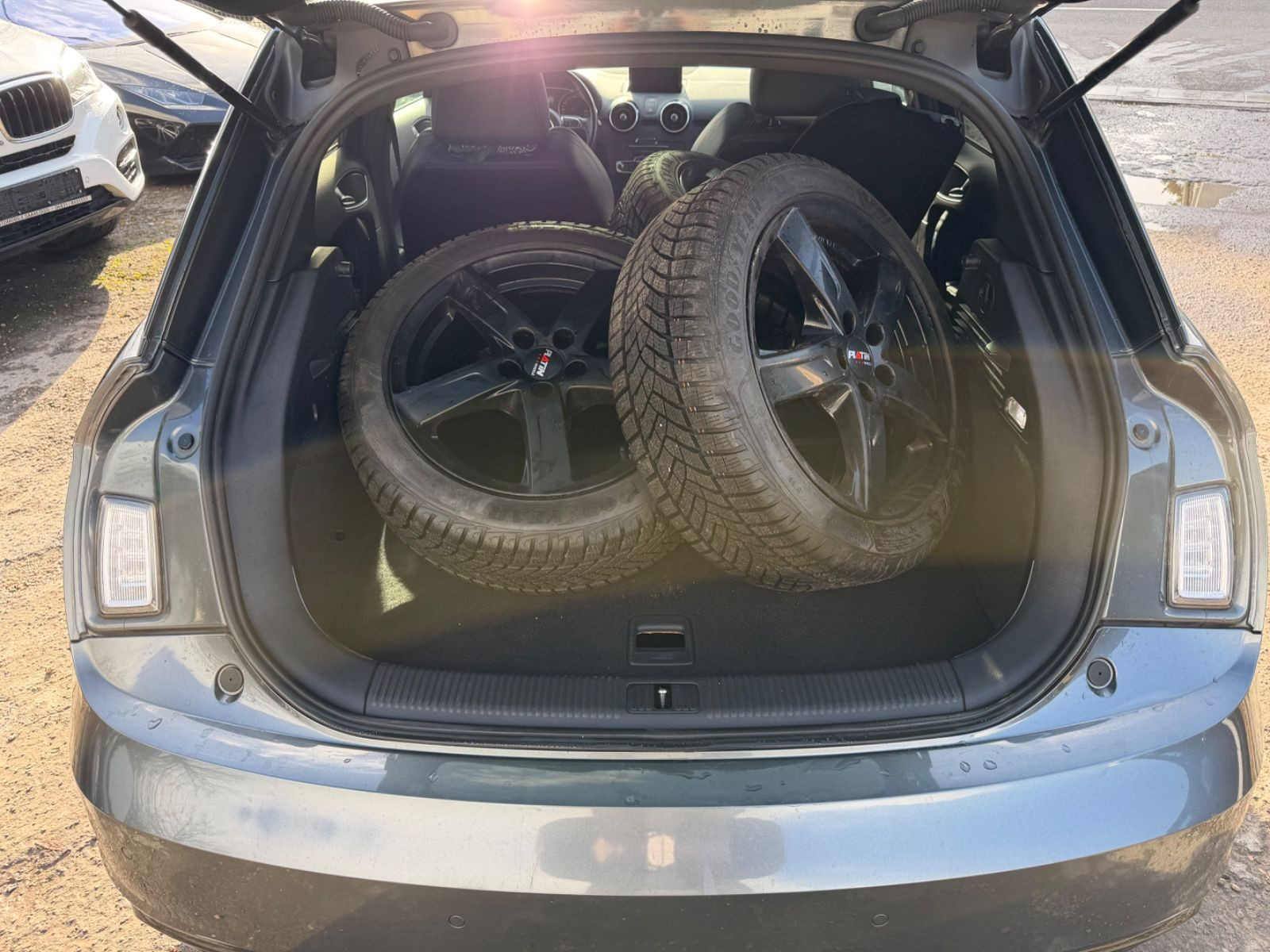 Ausstattungs-Paket: S line Sport-Paket / Plus, Außenspiegel Wagenfarbe, Dachhimmel Stoff, schwarz, Einparkhilfe hinten (APS), Klimaautomatik, Lenkrad (Sport/Leder - 3-Speichen, unten abgeflacht) mit Multifunktion und Schaltfunktion, LM-Felgen 7,5x18 (5-Arm, Rotor, Titanoptik), Multi-Media-Interface MMI Basic / MMI Radio, Multi-Media-Interface MMI Navigation, Navigations-Paket, Panorama-Ausstelldach elektrisch, Sonderlackierung Daytonagrau Perleffekt, Sound-System BOSE, Verglasung hinten abgedunkelt (Privacyverglasung), Wagenheber