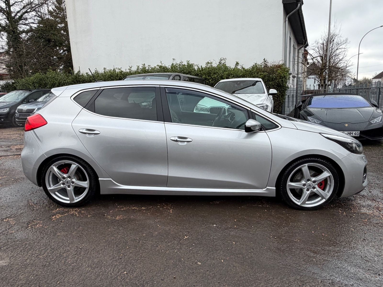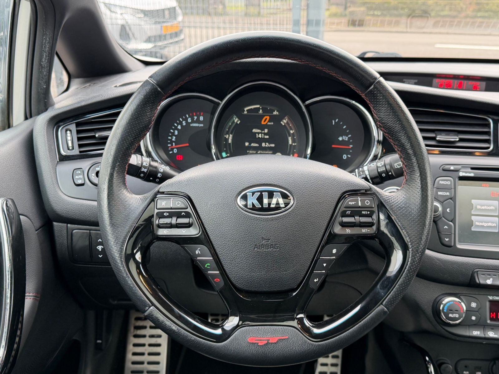 Airbag Fahrer-/Beifahrerseite, Aktives Bremslicht (ESS), Ambiente-Beleuchtung, Antriebs-Schlupfregelung (TCS), Anzeigeinstrumente Supervision mit LCD Display, Audiosystem KIA CD/MP3-Radio, Ausstattung GT, Außenspiegel elektr. anklappbar, Außenspiegel elektr. verstellbar, beide, Außenspiegel heizbar, Außenspiegel mit Umfeldleuchte, Außenspiegel Wagenfarbe, Außenspiegelgehäuse Klavierlack, Blinkleuchte in Außenspiegel integriert, Bordcomputer, Bremsassistent, Bremssättel Rot, Brillenfach in Dachhimmel / Dachkonsole integriert, Chrom-Paket, Chromeinfassung Seitenfenster, Dachspoiler, Einparkhilfe hinten, Einschaltautomatik für Fahrlicht, Einstiegsleisten (Aluminium), Endschalldämpfer Sportausführung, Fahrassistenz-System: Berganfahr-Assistent, Fensterheber elektrisch vorn + hinten, Fernentriegelung Tankklappe, Freisprecheinrichtung Bluetooth, Frontschürze Wagenfarbe, Fußmatten, Gegenlenkunterstützung (Vehicle Stability Management, VSM), Gepäckraumabdeckung / Rollo, Gepäcksicherungsnetz, Getränkehalter, Gurtstraffer mit Kraftbegrenzer, Handbremshebel Leder, Handschuhfach mit Kühlfunktion, Heckdiffusor, Heckleuchten LED, Heckscheibe heizbar, Heckscheibenwischer, Heckschürze mit Doppelauspuffblenden integriert, Heckschürze Wagenfarbe, Isofix-Aufnahmen für Kindersitz, Karosserie: 5-türig, Klimaautomatik 2-Zonen, Kopf-Airbag-System, Kopfstützen hinten verstellbar, Kopfstützen vorn verstellbar, Lendenwirbelstütze Sitz vorn links und rechts, elektr. verstellbar, Lenkrad heizbar, Lenksäule (Lenkrad) höhen-/längsverstellbar, LM-Felgen, Mittelkonsole Klavierlack-Optik, Motor 1,6 Ltr. - 150 kW TGDI KAT, Multifunktion für Lenkrad, Pedale Aluminium, Raucher-Paket, Reifendruck-Kontrollsystem, Reserverad als Notrad, Rücksitz klappbar 1/3-2/3, Schadstoffarm nach Abgasnorm Euro 5, Schalt-/Wählhebelgriff Leder, Schaltpunktanzeige, Seitenairbag, Seitenschweller Wagenfarbe, Sicherheitsgurte vorn höhenverstellbar, Sitz vorn links höhenverstellbar, Sitz vorn rechts mech. höhenverstellbar, Sitzbezug / Polsterung: Teilleder, Sitzheizung vorn, Sonnenblenden mit Spiegel (beleuchtet), Sport-Fahrwerk, Sportsitze, Stau-/Ablagefach im Laderaumboden, Steckdose (12V-Anschluß) im Koffer-/Laderaum, Steckdose (12V-Anschluß) in Mittelkonsole, Stoßfänger Wagenfarbe, Türgriffe außen Wagenfarbe, USB-Anschluss + AUX-IN-Anschluss, Verglasung hinten abgedunkelt (Privacy Glass), Wärmeschutzverglasung