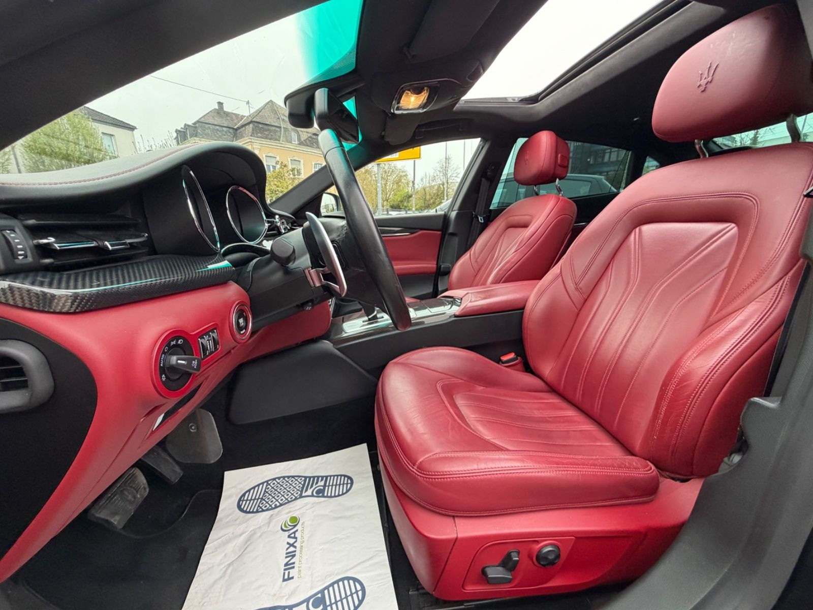Airbag Fahrer-/Beifahrerseite und Seitenairbag vorn, Ambiente-Beleuchtung, Außenspiegel elektr. verstell-, heiz- und anklappbar, Außenspiegel mit Abblendautomatik, Außentemperaturanzeige, Bordcomputer mit Farbdisplay, Bremsanlage: Brembo, Bremsassistent (HBA), Doppelverglasung, Easy-Entry / Easy-Exit Funktion, Einparkhilfe vorn und hinten, Elektr. Bremskraftverteilung (EBD), Elektron. Traktionskontrolle, Fahrassistenz-System: Berganfahrhilfe, Fahrassistenz-System: Notbrems-Assistent (BAS), Fahrmodusschalter, Fahrwerk elektronisch geregelt (Skyhook), Fensterheber elektrisch vorn + hinten, Fußmatten Velours, Getriebe Automatik - mit manueller Schaltmöglichkeit (8-Stufen), Heckleuchten LED, Heckscheibe heizbar, Innenausstattung: Interieureinlagen Edelholz Radica, Innenausstattung: Leder Poltrona FRAU, Innenspiegel mit Abblendautomatik, Isofix-Aufnahmen für Kindersitz an Rücksitz, Karosserie: 4-türig, Keyless-Entry, Klimaautomatik 2-Zonen, Kopf-Airbag-System (Windowbag), Kopfstützen mit Geprägter Dreizack, Lenkrad (Sport/Leder - 3-Speichen) mit Multifunktion, Lenksäule (Lenkrad) elektr. verstellbar (vertikal / axial), LM-Felgen, Matrix-LED-Scheinwerfer, Mittelarmlehne hinten mit Getränkehalter, USB-Anschluss und 12V-Anschluß, Mittelarmlehne vorn mit klimatisiertem Staufach und 12V-Anschluß, Motor 3,0 Ltr. - 301 kW V6 TwinTurbo KAT, Motor-Schleppmoment-Regulator (MSR), Multimedia-System Maserati Touch Control (inkl. 8,4 Zoll Touchscreen-Farbdisplay, DVD-Player, SD-Karten-Schnittstelle), Parkbremse elektrisch (EPB), Reifen-Reparaturset, Reifendruck-Kontrollsystem, Rückfahrkamera, Rücksitzlehne geteilt/klappbar (60:40), Schadstoffarm nach Abgasnorm Euro 5, Schalt-/Wählhebelgriff Leder, Scheibenwaschdüsen heizbar, Scheinwerfer-Reinigungsanlage (SRA) heizbar, Sitze vorn elektr. verstellbar (links mit Memory), Sitzheizung vorn, Sonnenschutzrollo an Seitenscheiben hinten, elektrisch, Sound-System Premium (10 Lautsprecher), Sprachbedienung Smart Personal Assistent (SIRI), Start-Stop-Knopf, Start/Stop-Anlage, Tagfahrlicht LED, Uni-Lackierung