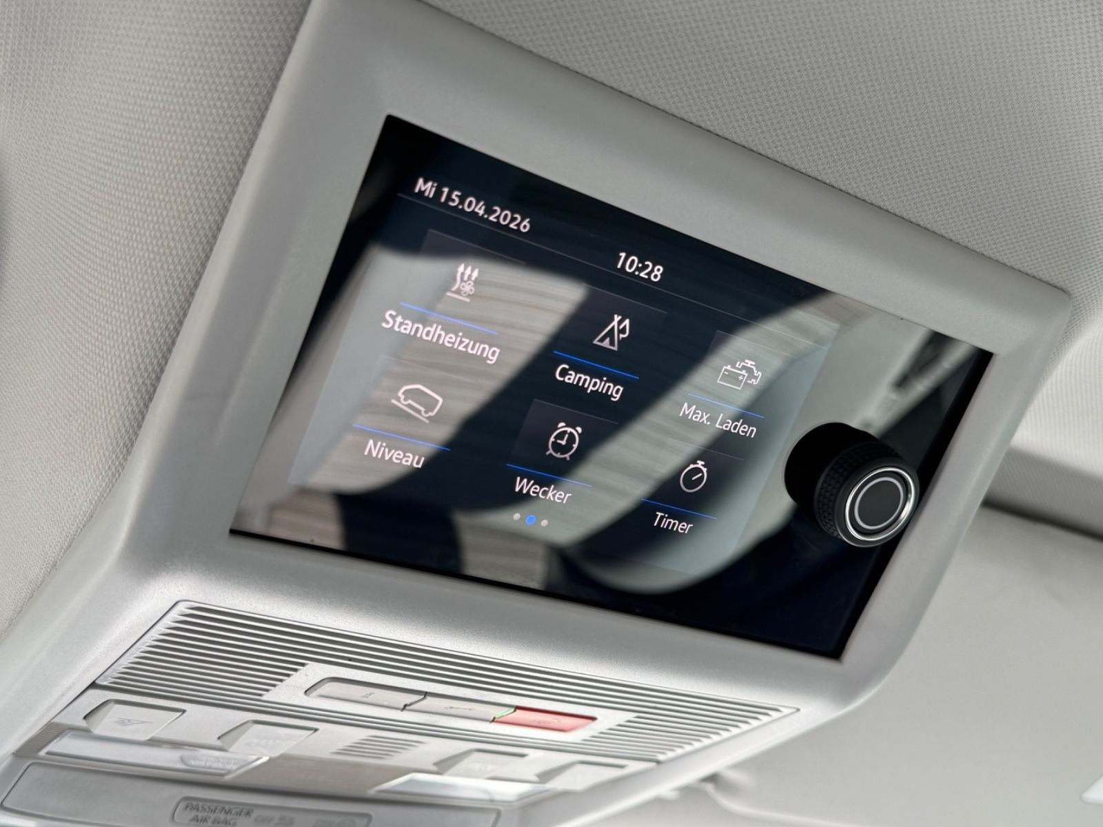 Allwetter-/ Ganzjahresreifen, Audio-Navigationssystem Discover Media Streaming & Internet (Touchscreen, USB), Aufstelldach manuell betätigt mit Bugfenster und Frontöffnung, Faltenbalg grau, Ausstattungs-Paket: Komfort-Paket, Außenspiegel und Türgriffe außen in Wagenfarbe, Bettverlängerung mit Polsterauflage (Komfort), Bordwerkzeug und Wagenheber, Fahrassistenz-System: Berganfahr-/Abfahr-Assistent, Fahrassistenz-System: Parklenkassistent (Park Assist) inkl. Einparkhilfe mit aktivem Flankenschutz, Fahrwerk 17", Fußmatten Fahrerhaus: Gummi, Generator verstärkt, Innenausstattung: Dekoreinlagen Bright Brushed Grey, Innenbeleuchtung Camper (inkl. Beleuchtung Aufstelldach / Heckklappe), Kühlergrill schwarz lackiert, mit Chromleisten, Lackierung: Sonderlackierung Candy-weiss uni, Ladekantenschutz innen Kunststoff und auf der Stoßstange schwarz, LM-Felgen 7x17 (Aracaju, schwarz), Multifunktionsanzeige Premium (Farbdisplay), Reserverad in Fahrbereifung, Rückfahrkamera, Scheibenwaschdüsen beheizt und Anzeige für Waschwasserstand, Scheinwerfer und Heckleuchten LED, Sitze im Fahrerhaus: Fahrer- und Beifahrersitz heizbar, Sitze im Lade-/FG-Raum: 1.Reihe, 1 Drehsitz links, Standheizung mit Fernbedienung, Zeitschaltuhr und Zuheizer, Steckdose 230V (mit Einspeisung für Batterieaufladung), Verglasung hinten abgedunkelt (90 %), Zuziehhilfe für Heckklappe, Zuziehhilfe Schiebetür rechts